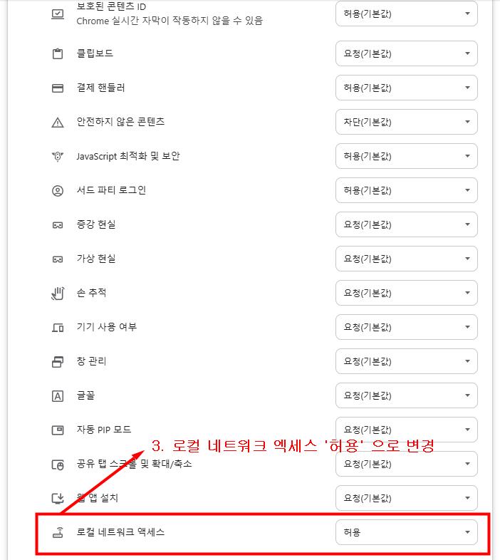 3. [권한] - [로컬 네트워크 엑세스] - [허용]