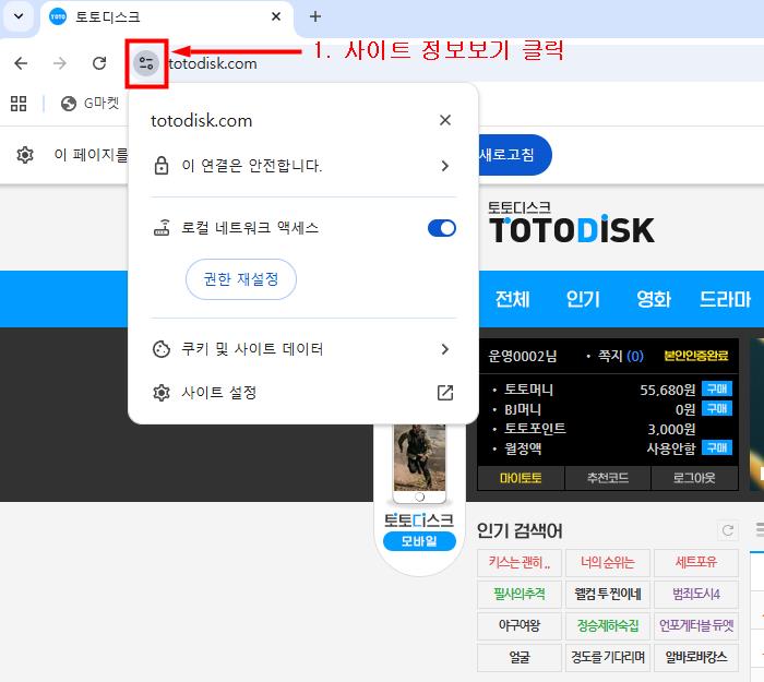 1. 링크 주소 앞의 [사이트 정보 보기] 아이콘 클릭