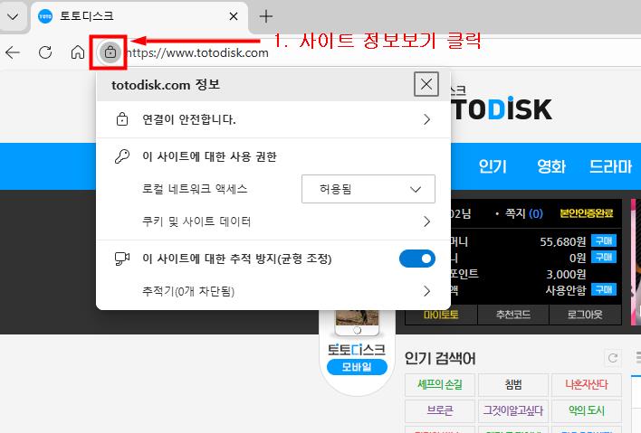 1. 링크 소 앞의 [사이트 정보 보기] 아이콘 클릭